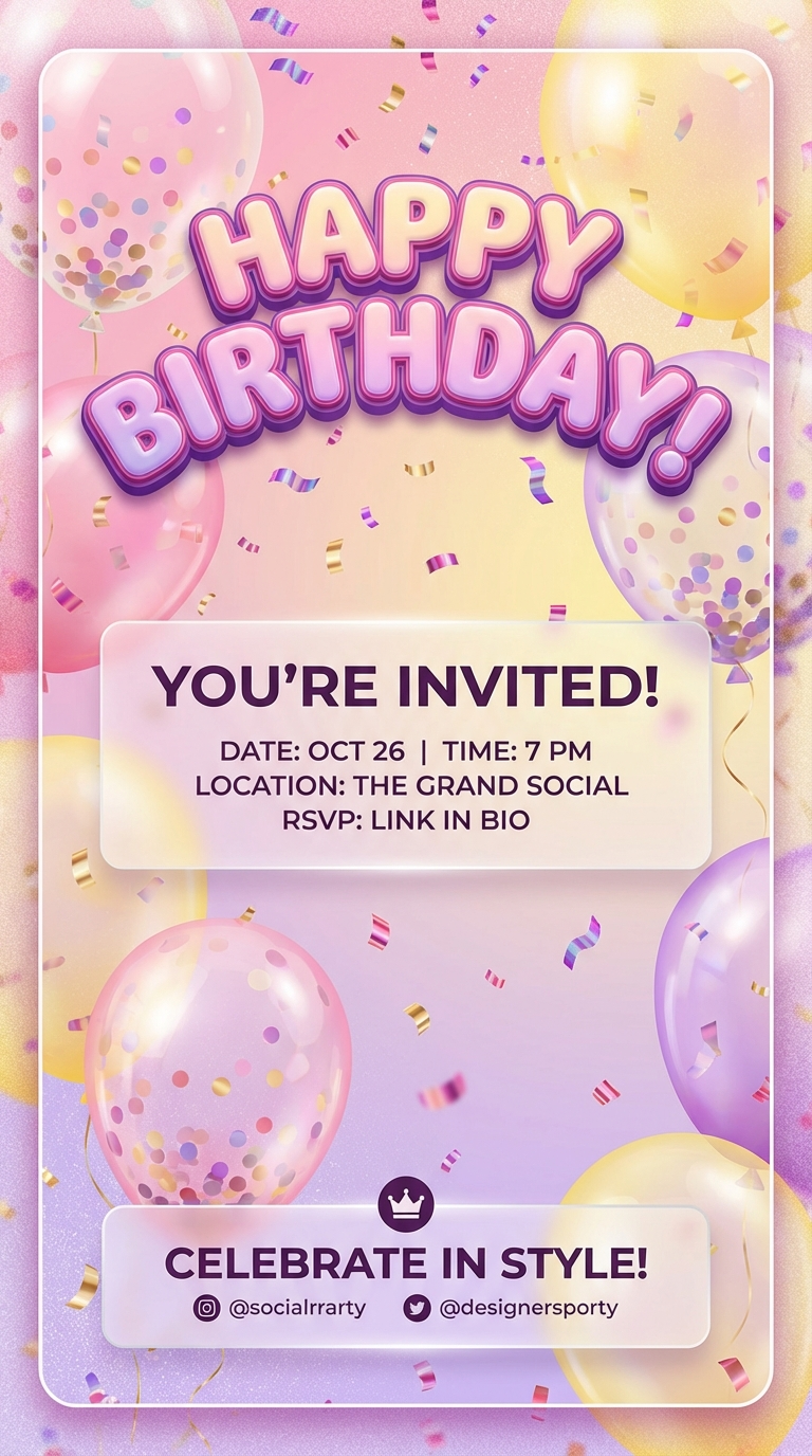 Keep the invite recognizable while adding floating confetti, light camera push, and celebratory motion cues.