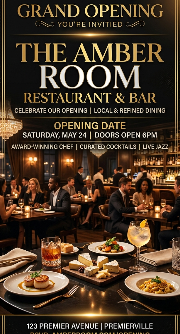 RESTAURANT OPENINGThese layouts show the kind of static flyer compositions that convert well into short AI video output.
